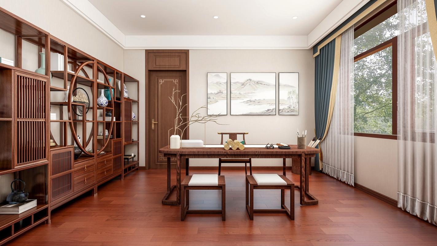 新中式书房装修效果图大全2020图片-家里装修新中式,如何装修大气一点的书房?